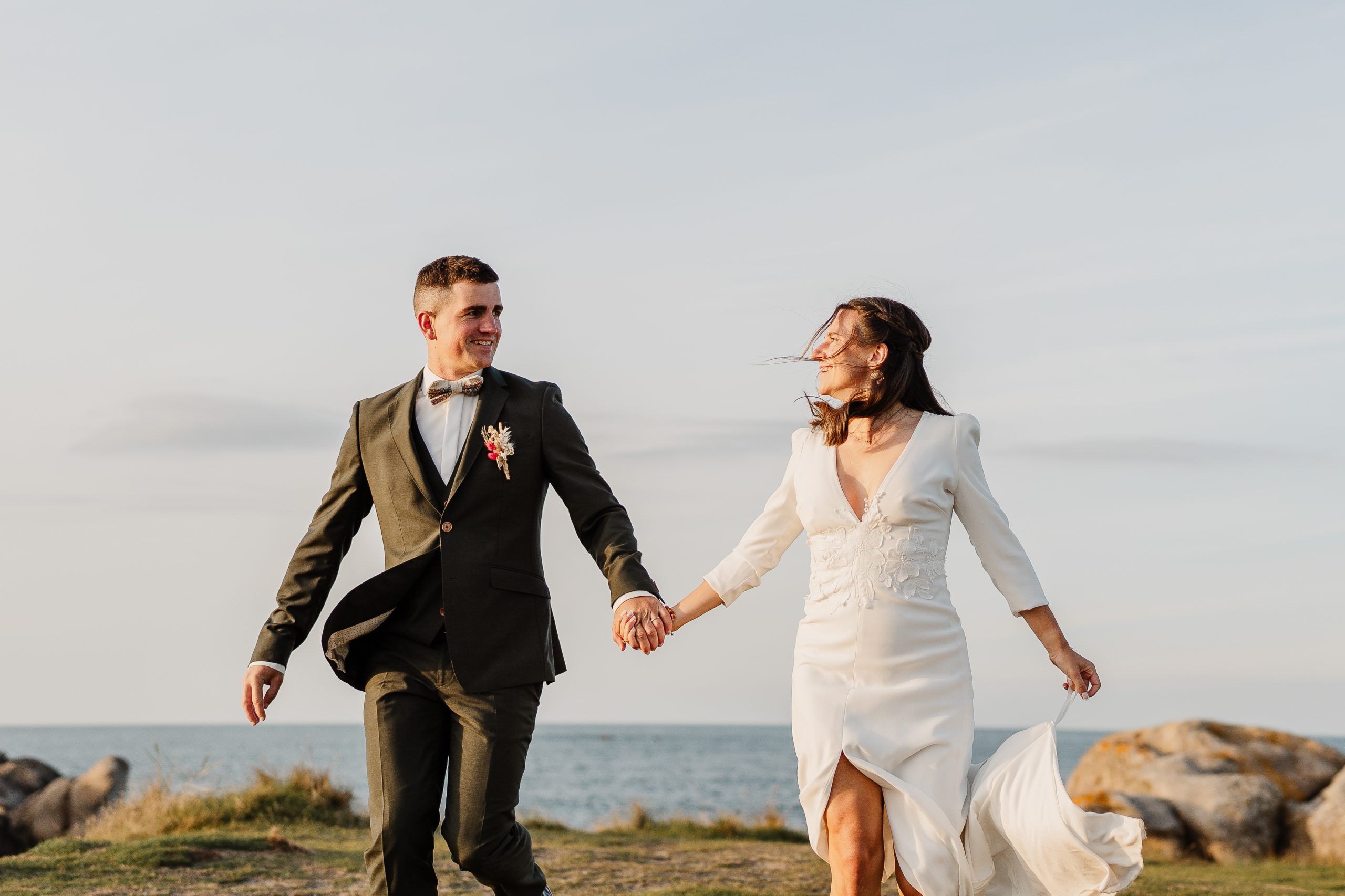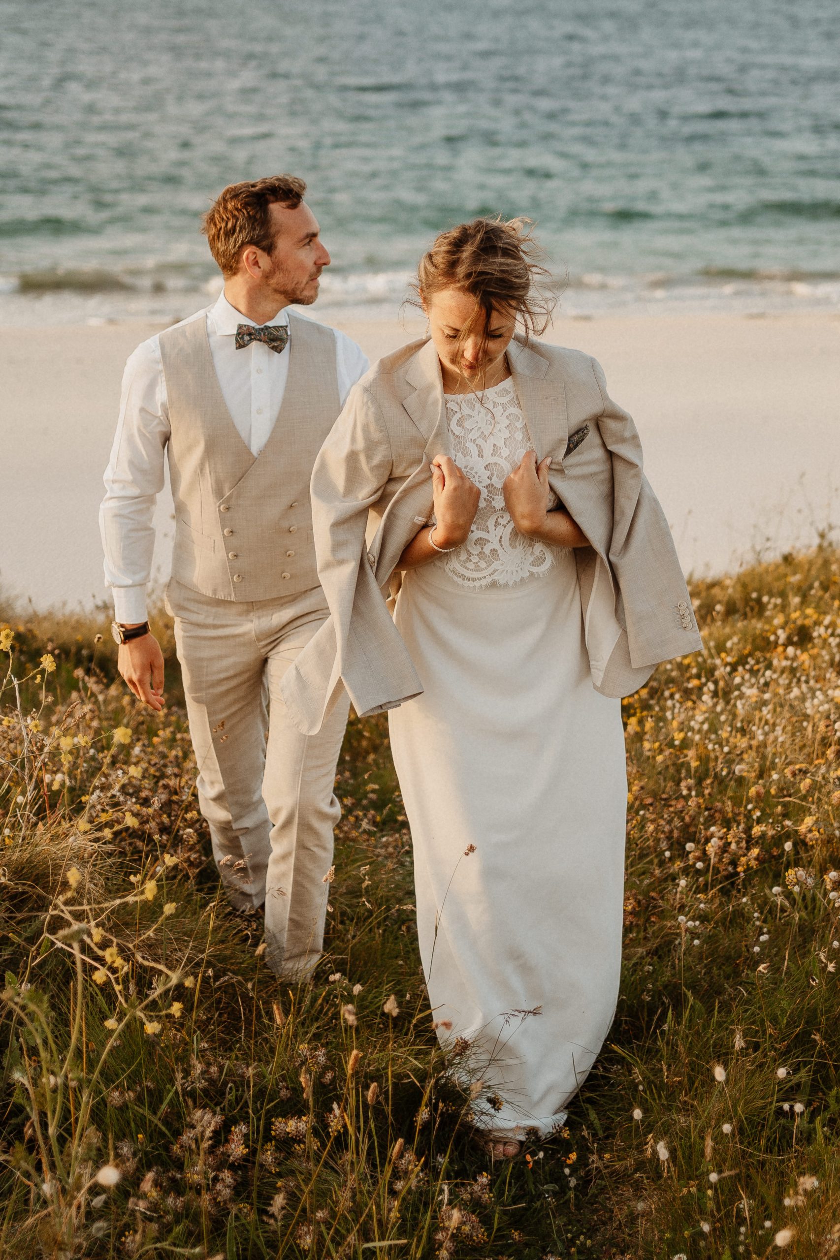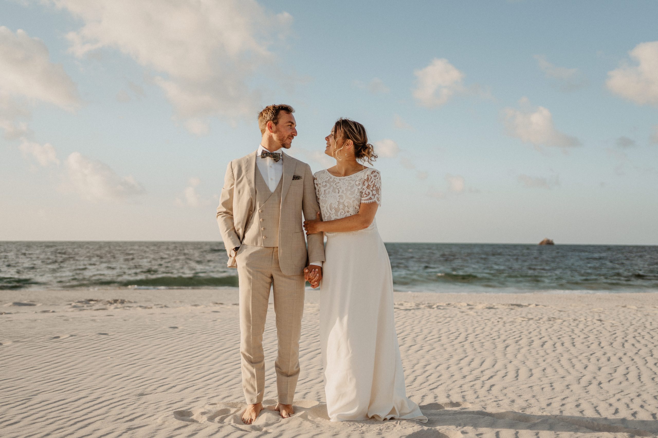 Le vent qui soulève légèrement votre robe, le bruit des vagues en fond, vos mains qui se retrouvent…