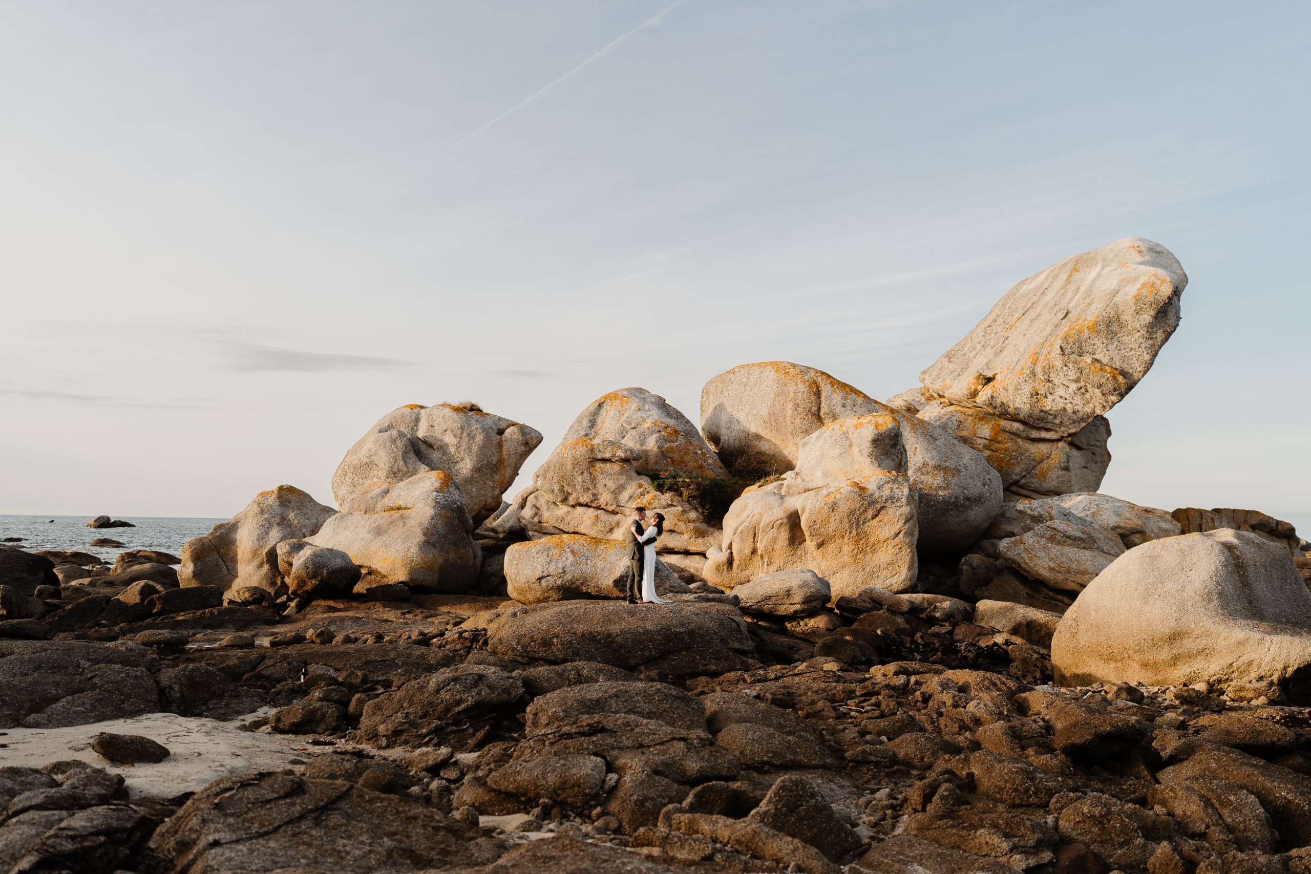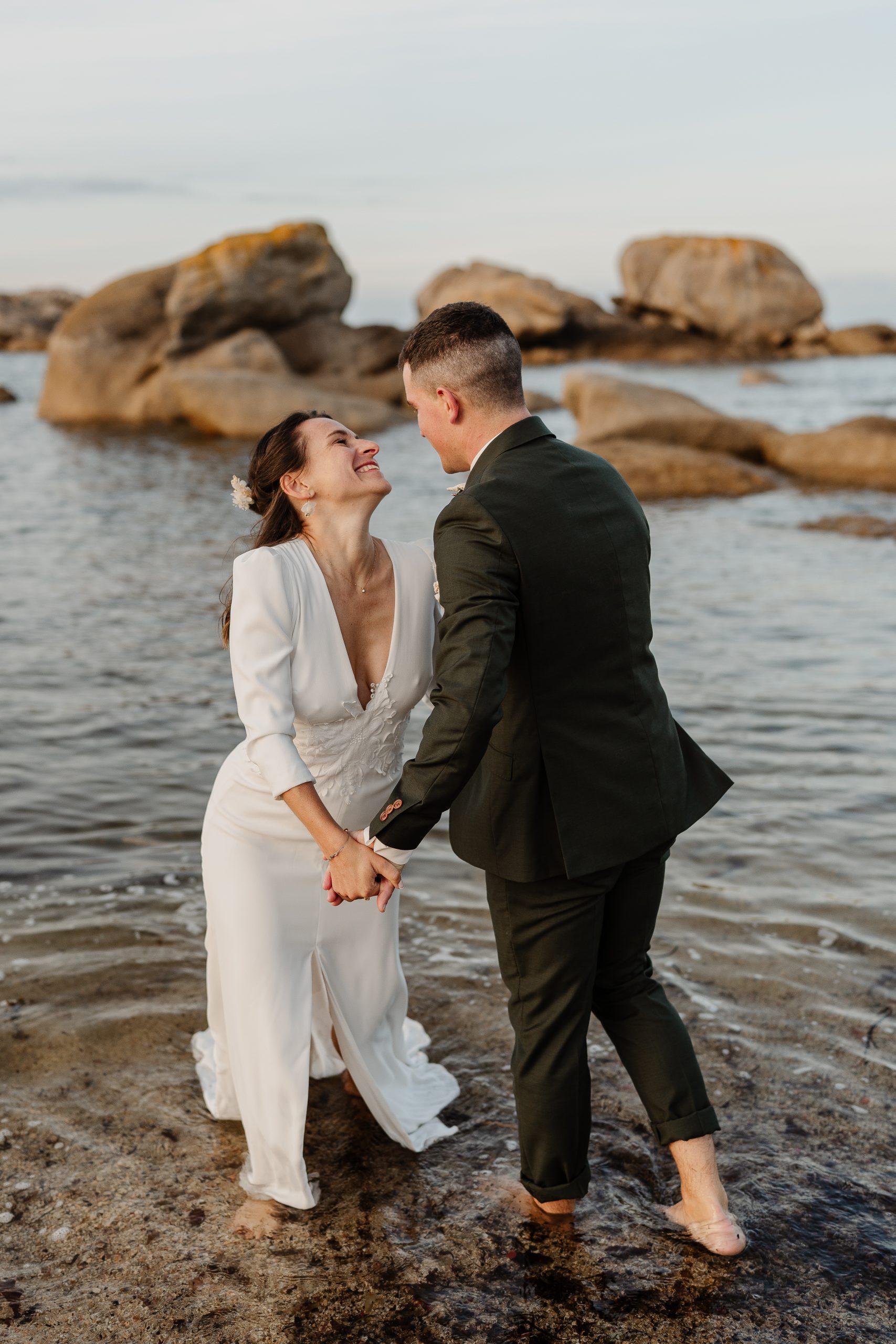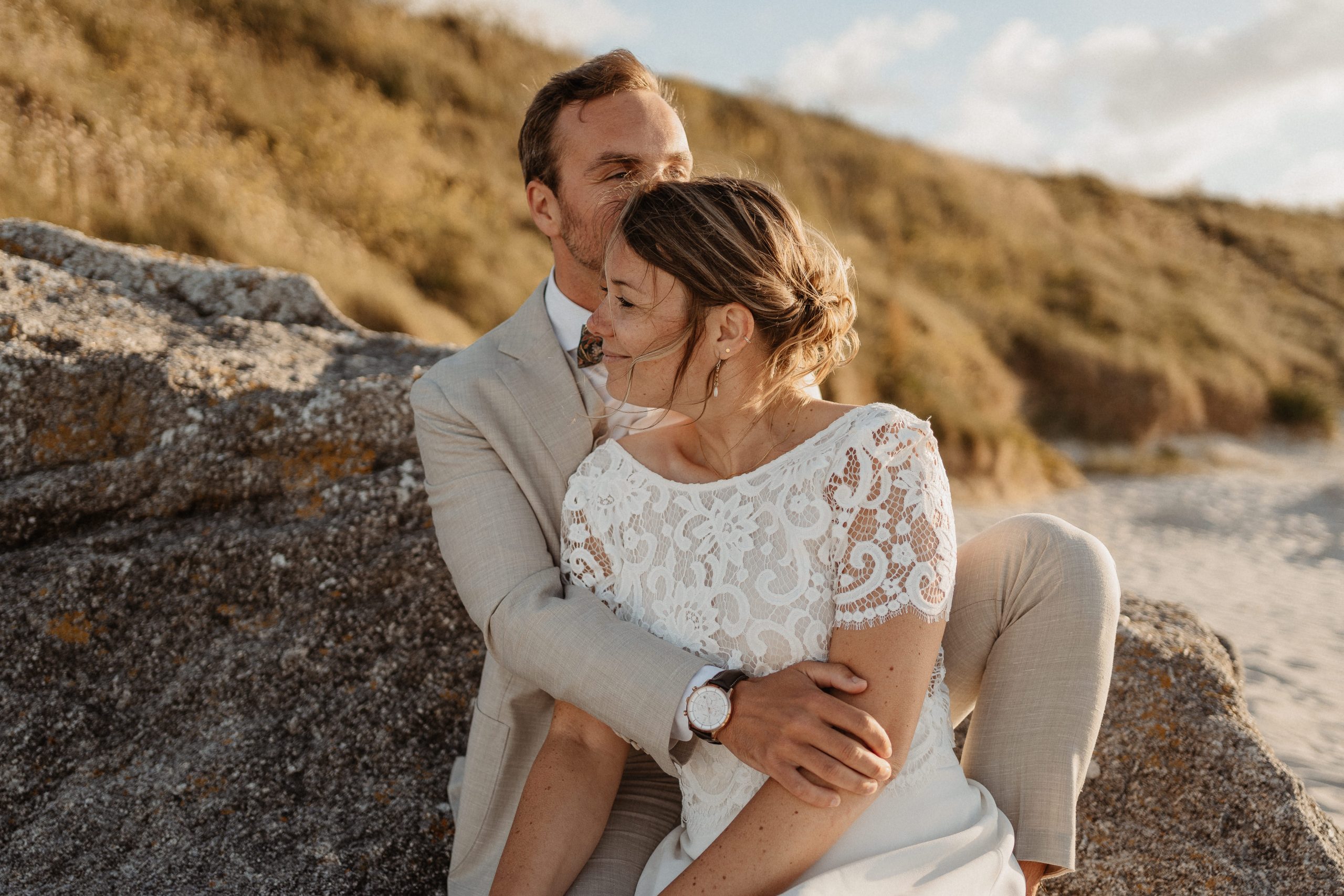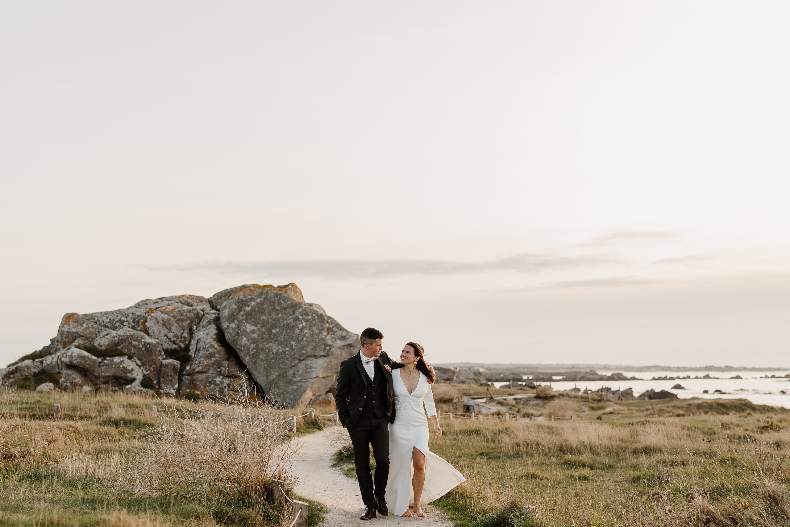 Le vent qui soulève légèrement votre robe, le bruit des vagues en fond, vos mains qui se retrouvent…